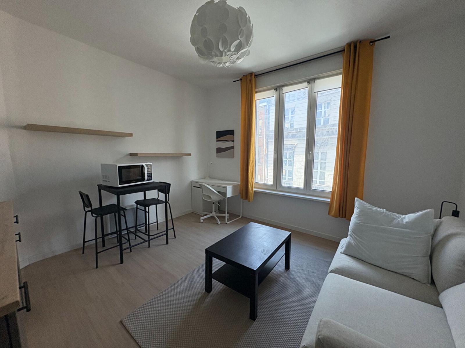 A LOUER, rue Kléber. Référence : G379-2 T1bis meublé situé rue Kléber à Hellemmes, le bien est composé d'une pièce de vie avec canapé convertible, mange-debout avec chaises et cuisine aménagée et équipée (micro-onde, lave...