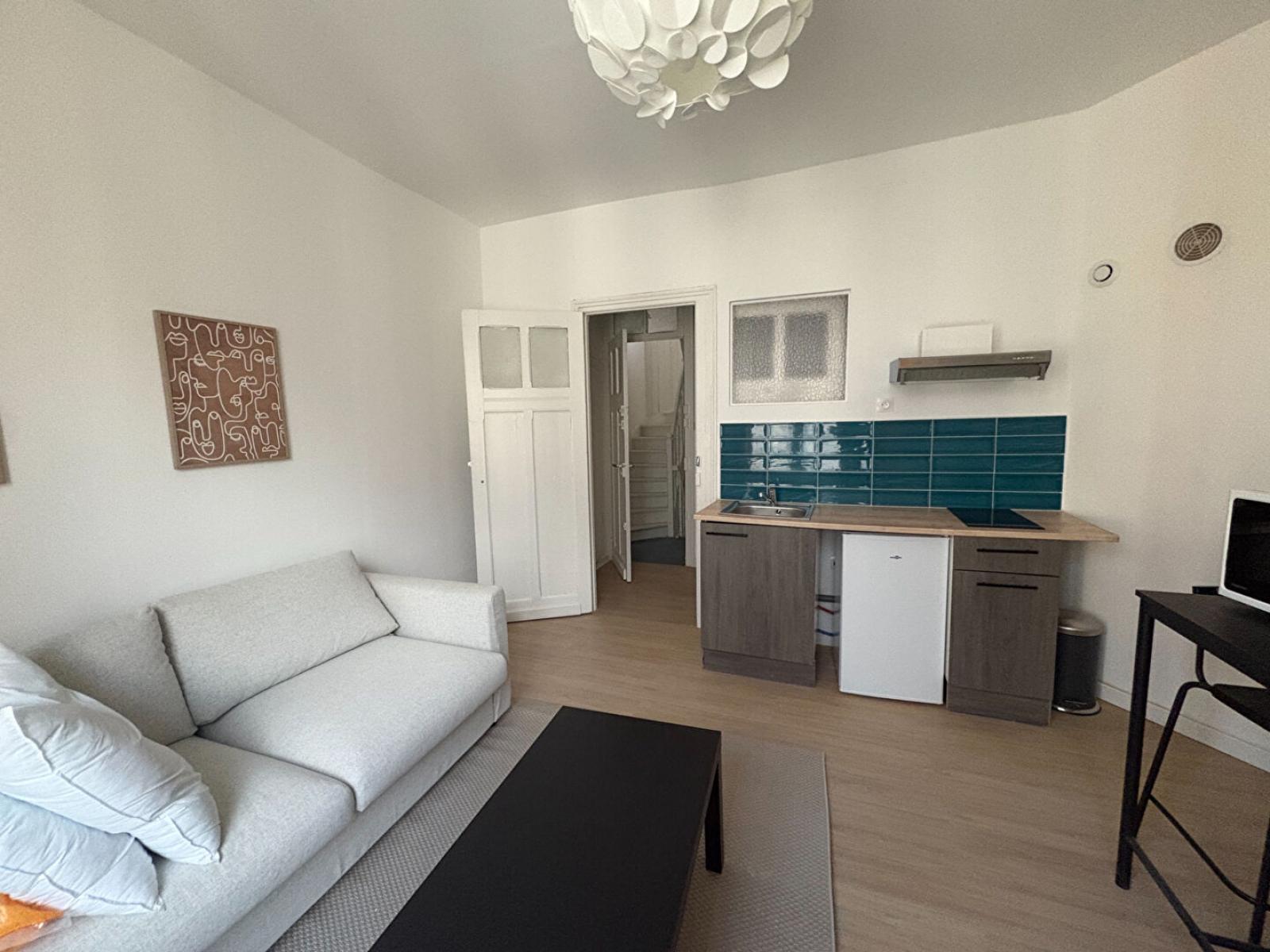 Studio meublé entièrement rénové de 25.89m2 comprenant une entrée avec rangement, un séjour avec canapé convertible, table à manger et une table basse. Le bien dispose d'une cuisine ouverte sur le séjour avec frigo, évier, plaques de cuisson, hotte et rangements. Le studio se compose également d'une belle salle de bain avec douche, vasque, rangements, branchement MAL et WC.