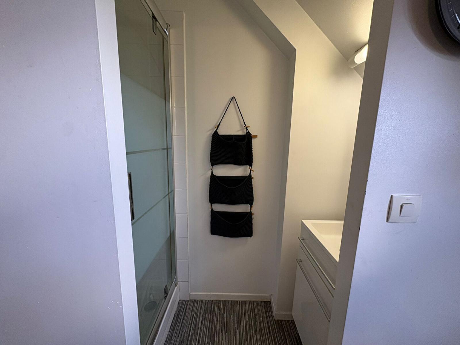 Située au 2ème étage, elle comprend un coin travail, une salle de douche privative (douche, meuble vasque), WC sur palier et un lit !
