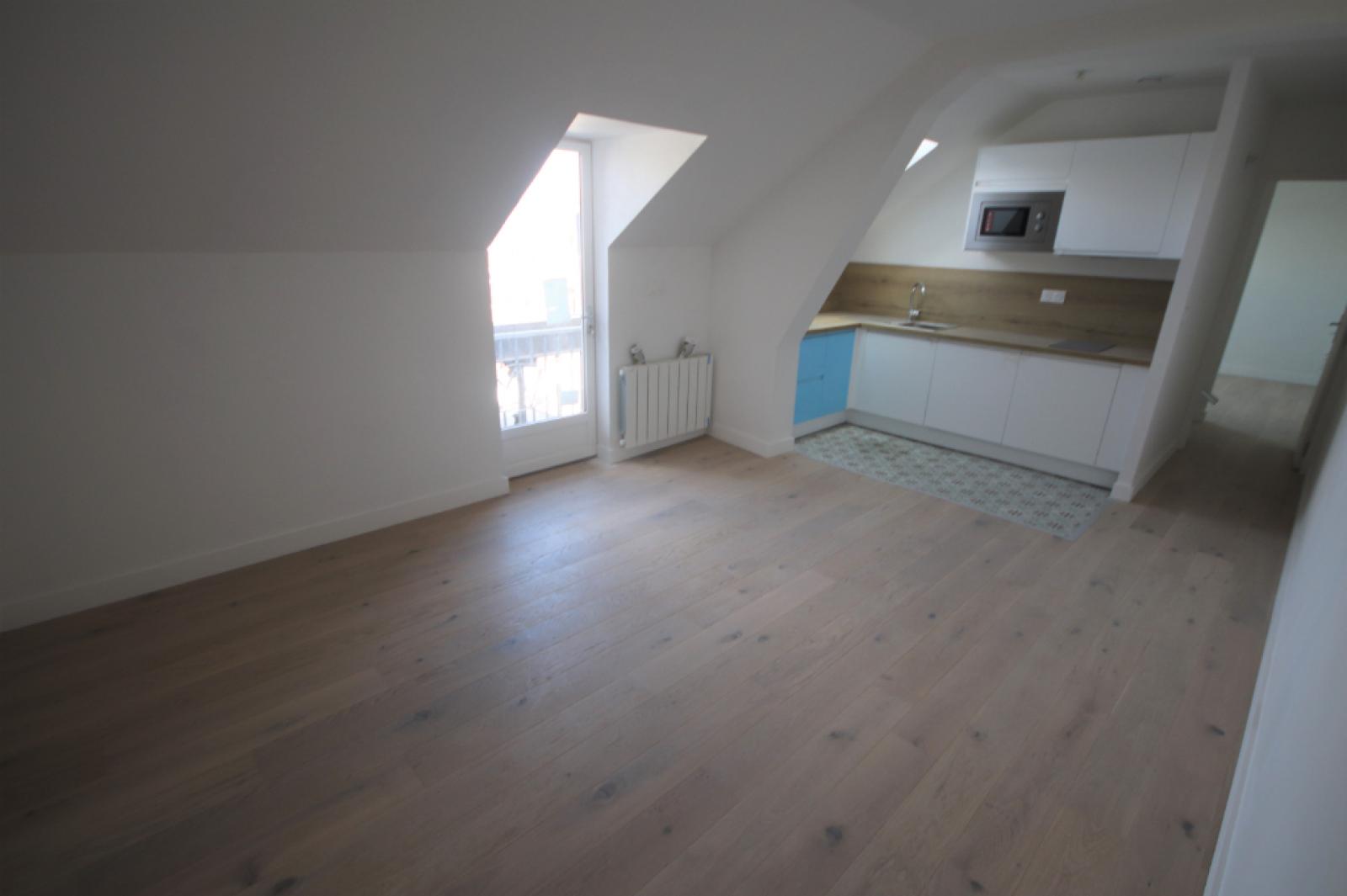 A LOUER, rue de Metz Référence G255 Pour plus d'information, merci de nous contacter 03 62 09 16 81 T1 bis MEUBLE de 20,89m2 comprenant une pièce de vie avec cheminée décorative et placards, un canapé et une table, une cuisine...