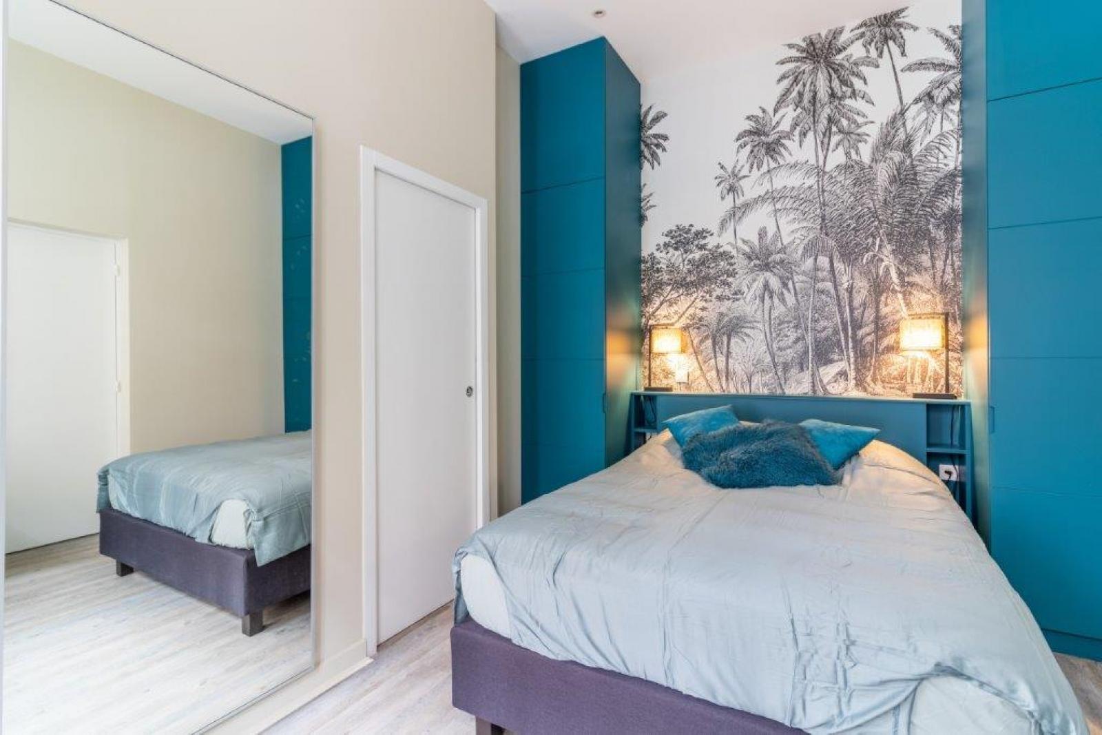 Dans les parties communes : un séjour (canapé, TV), une cuisine aménagée (frigos, congélateurs, four, micro-ondes et lave-vaisselle), une buanderie (sèche-linge et lave-linge), un local vélo et une belle terrasse de 30.59 m².