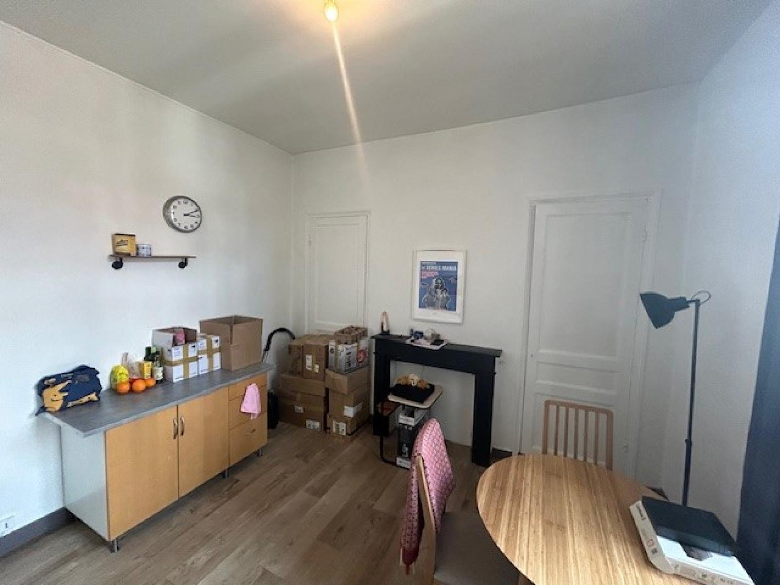 T2 NON MEUBLÉ de 34 m² situé au premier étage. L'appartement comprend une pièce à vivre avec cheminée décorative, une kitchenette semi-équipée (plaques, réfrigérateur), une chambre, une salle d'eau (douche, WC).