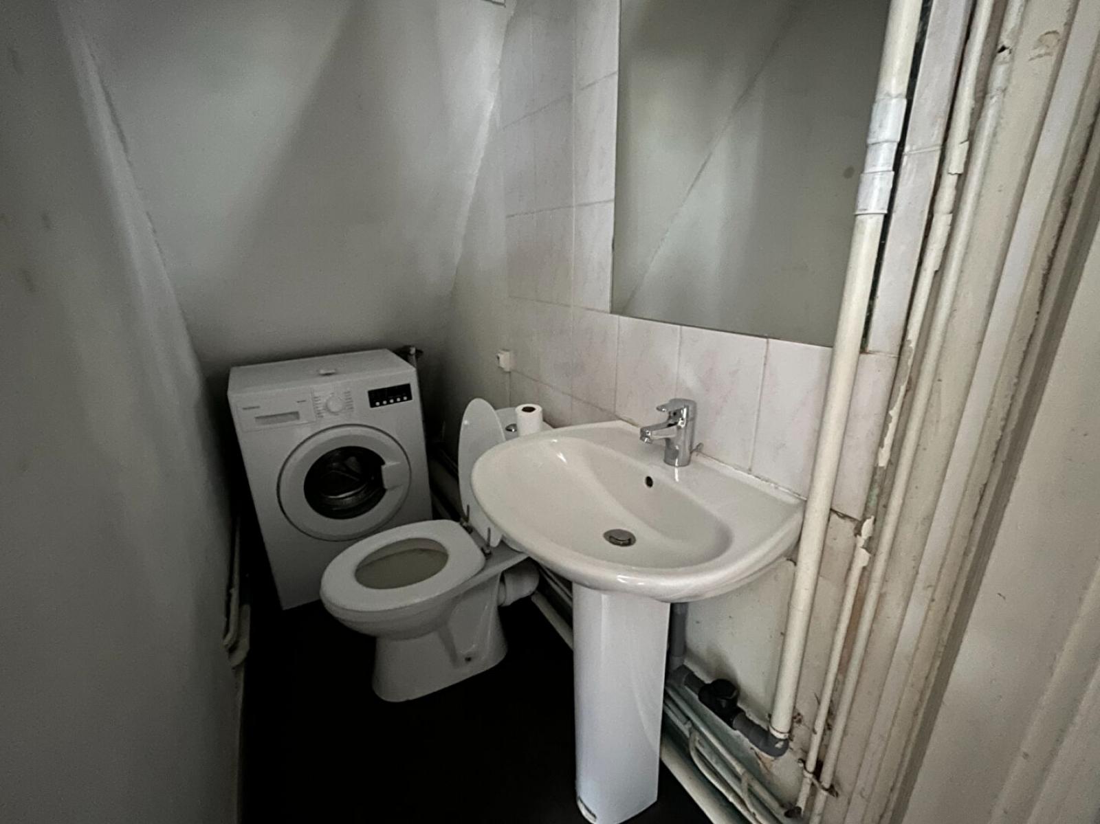 T1bis de 32 m² situé au deuxième étage. L'appartement comprend une entrée avec un coin cuisine, une pièce à vivre ainsi qu'une salle d'eau (douche, machine à laver) et des WC séparés.