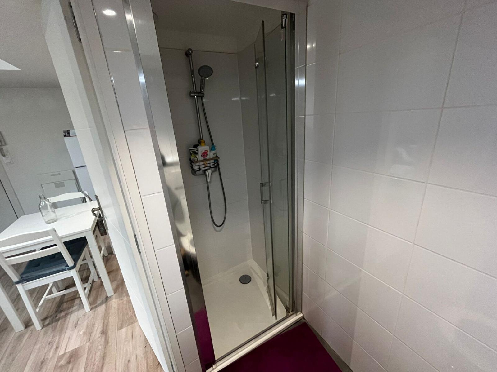 Studio avec meubles à disposition, situé rue Léon Gambetta. Cet appartement comprend une pièce principale, une petite cuisine équipée (plaques, lave vaisselle, micro-ondes, hotte, placard), lit escamotable, bureau, table de bar et tabouret, TV, salle de bain (douche, meuble vasque et WC), internet, laverie dans les parties communes.