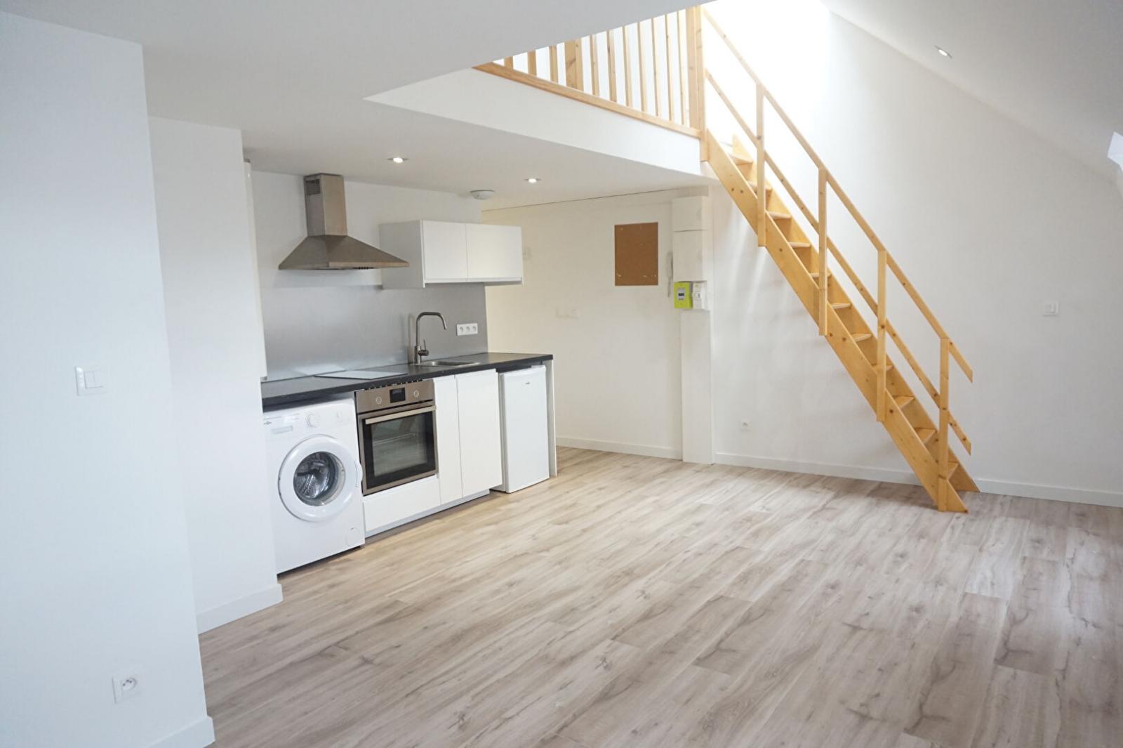 T1 BIS de 33,28 m2 situé rue Léon Gambetta, à proximité du métro République Beaux Arts, Gambetta et des commerces. Cet appartement comprend une pièce de vie principale avec une cuisine aménagée et équipée (plaques, four, hotte, frigo, éléments haut et bas de rangement), une salle de bain (douche, WC et meuble vasque), une chambre en mezzanine.