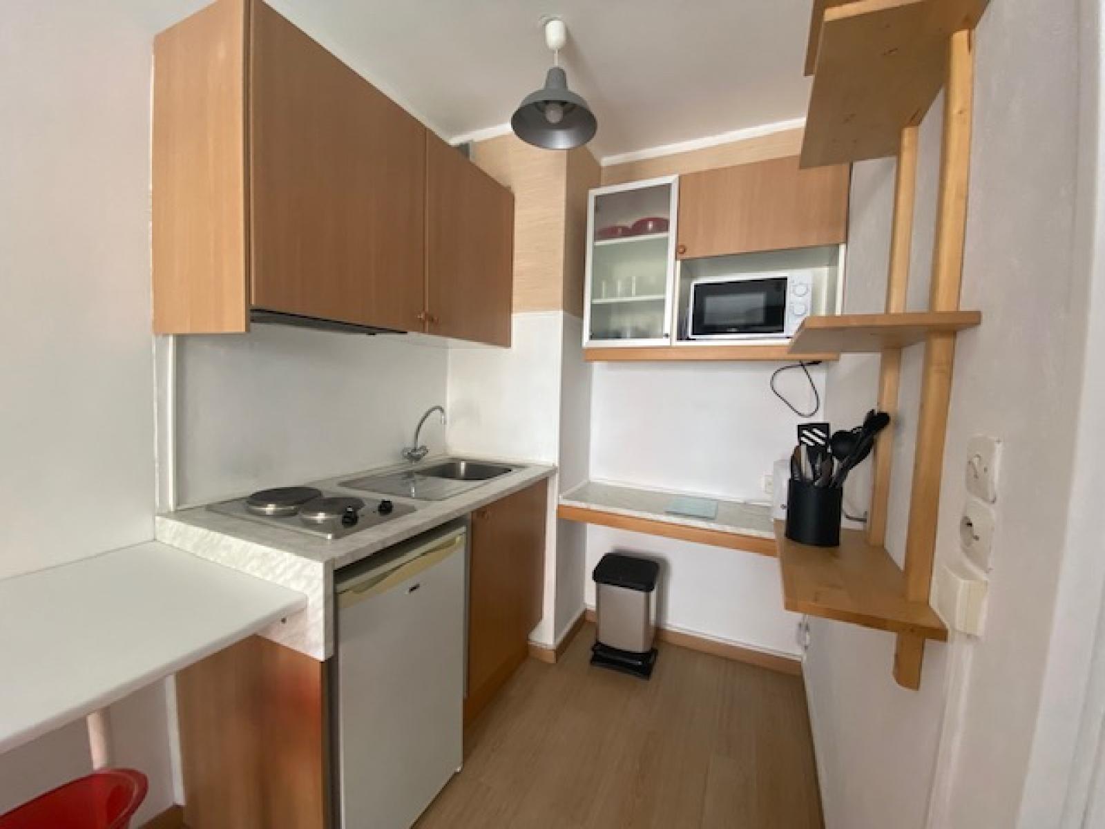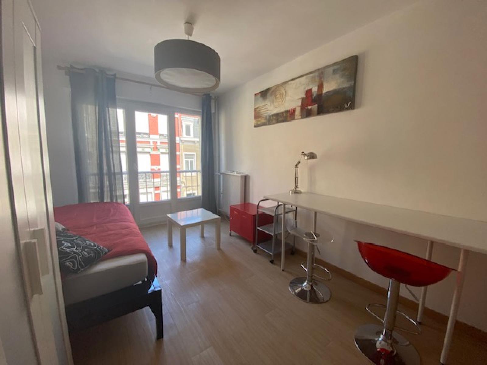 Studio meublé de 20,20m² dans une résidence sécurisée avec ascenseur. Cet appartement comprend une entrée, une pièce principale avec canapé, table, chaises, un coin cuisine équipée et aménagée (plaques, évier, réfrigérateur, four micro ondes, rangements, vaisselle). Une salle de bain, avec baignoire, WC, et meuble vasque.
