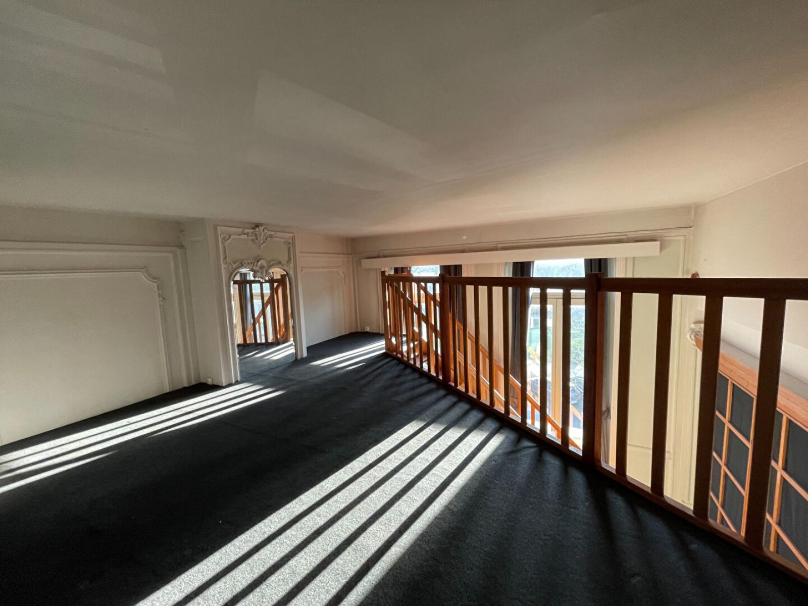 L'appartement comprend une entrée, un séjour/salle à manger (table, chaises, cheminée décorative, moulures au plafond), une cuisine équipée (plaques, hotte, réfrigérateur, micro-ondes, rangements), une chambre (lit 2 place, cheminée décorative, miroir), une vaste mezzanine tapissée pouvant servir de dressing, une salle d'eau (douche, meuble vasque, emplacement MAL, WC, rangements).