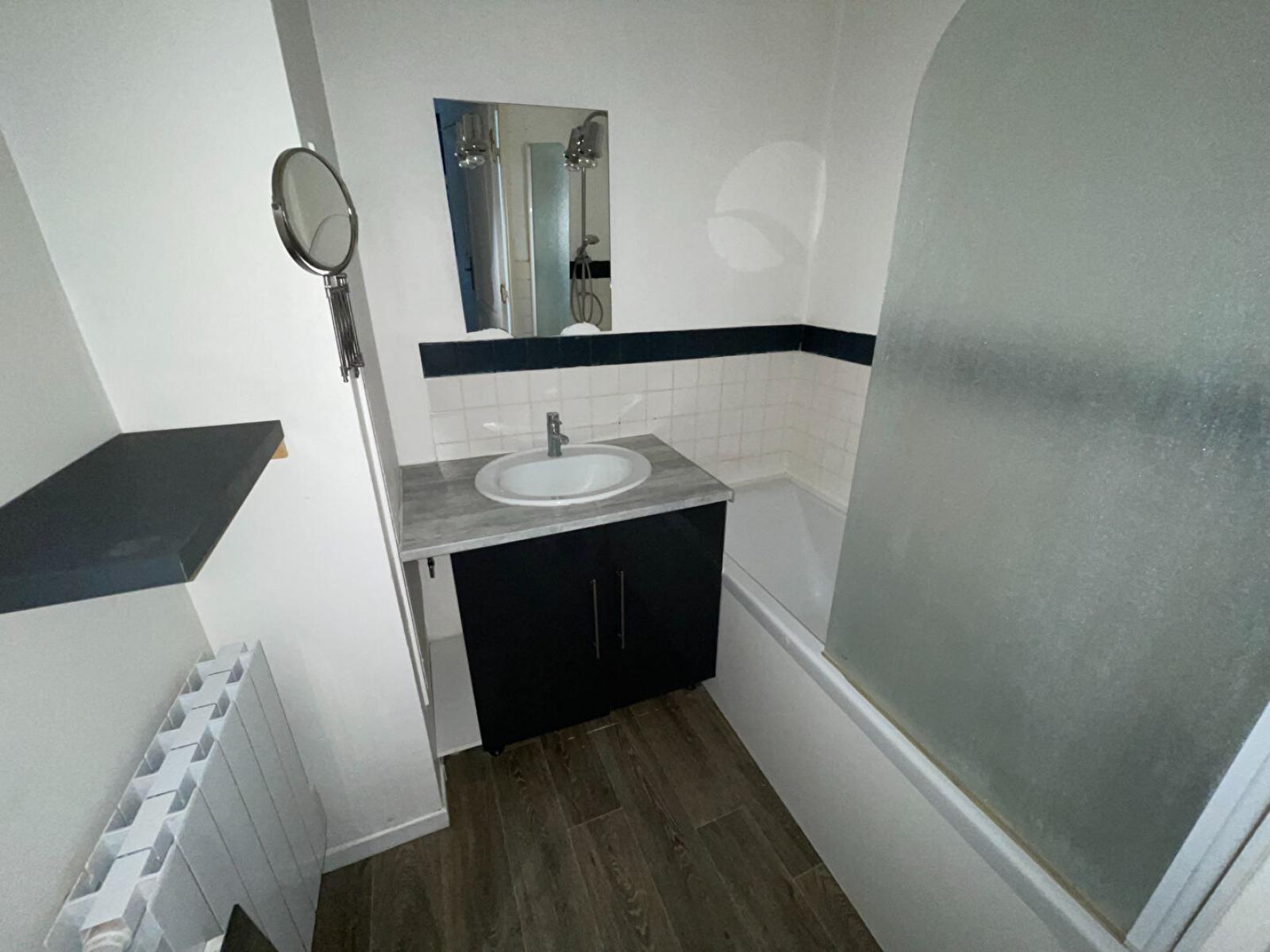 A LOUER, rue Manuel Référence 5780 T2 de 35,98m2 disposant d'un salon séjour avec cheminée décorative, une cuisine équipée (plaques, hotte, frigo), une salle de bain (douche, meuble vasque, branchement MAL et WC) et une chambre...