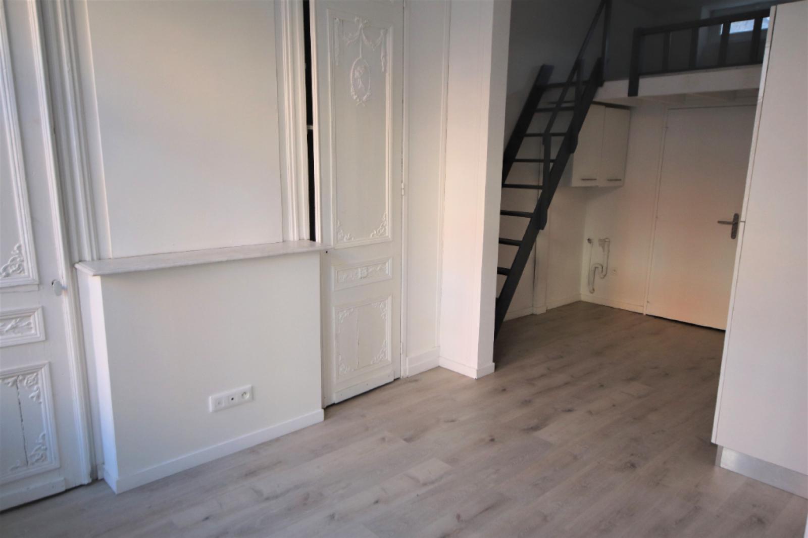 Á LOUER - Rue Jacquemars Giélée RÉFÉRENCE : 729-001-GLI Studio de 17 m² situé au rez-de-chaussée sur rue comprenant une pièce à vivre avec kitchenette (plaque, frigo, micro-ondes), un coin nuit en mezzanine (sommier deux...