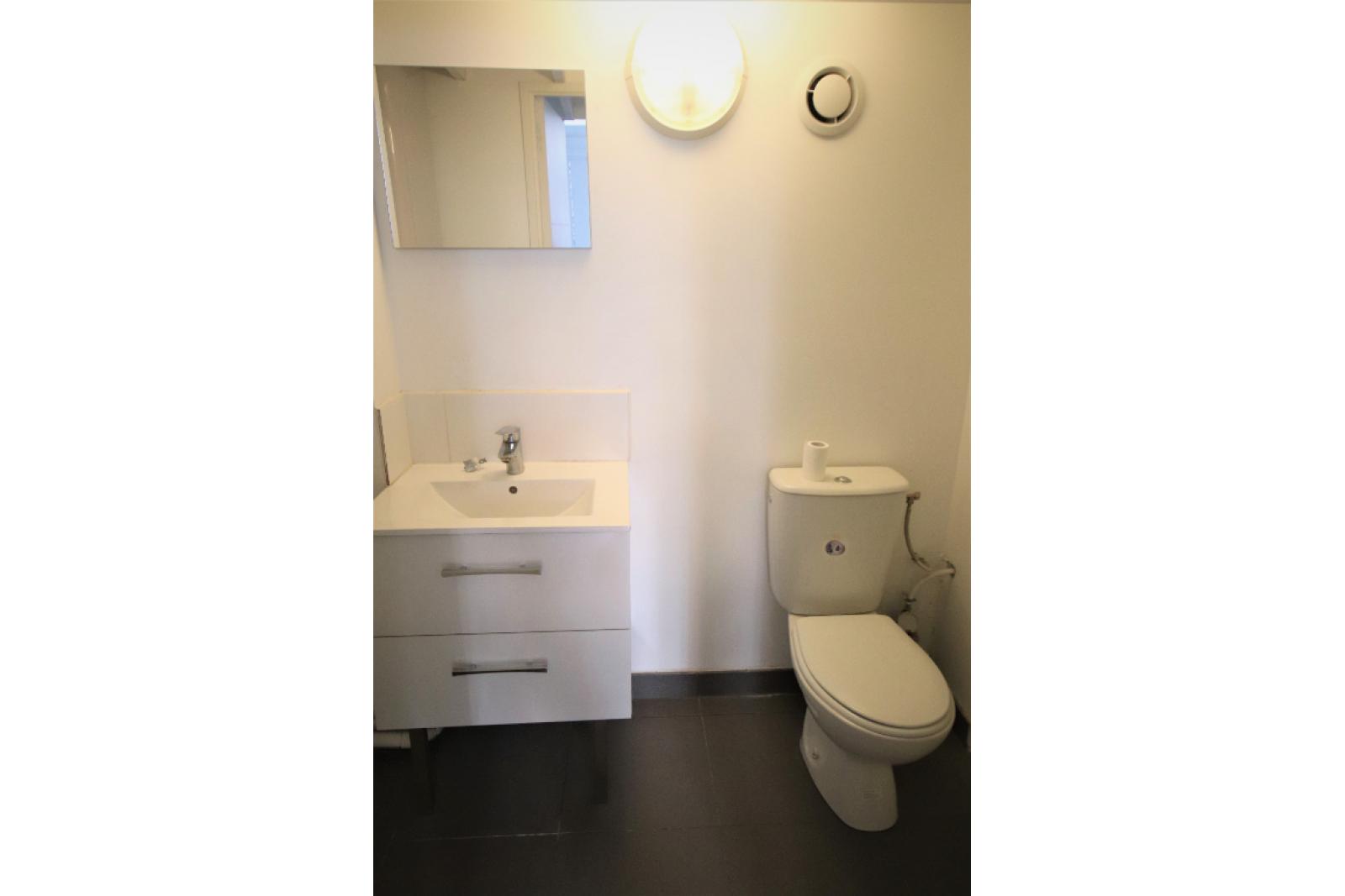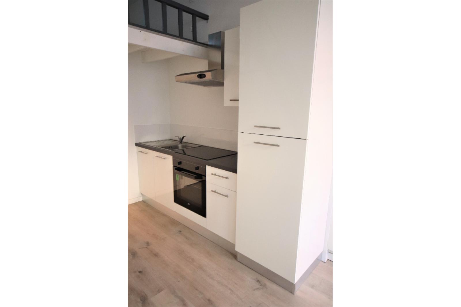 Studio de 21 m² situé au rez-de-chaussée sur rue. L'appartement comprend une pièce à vivre avec cuisine équipée (four, plaque, réfrigérateur, hotte, emplacement MAL), un coin nuit en mezzanine et une salle d'eau (douche, vasque, WC, sèche serviettes).