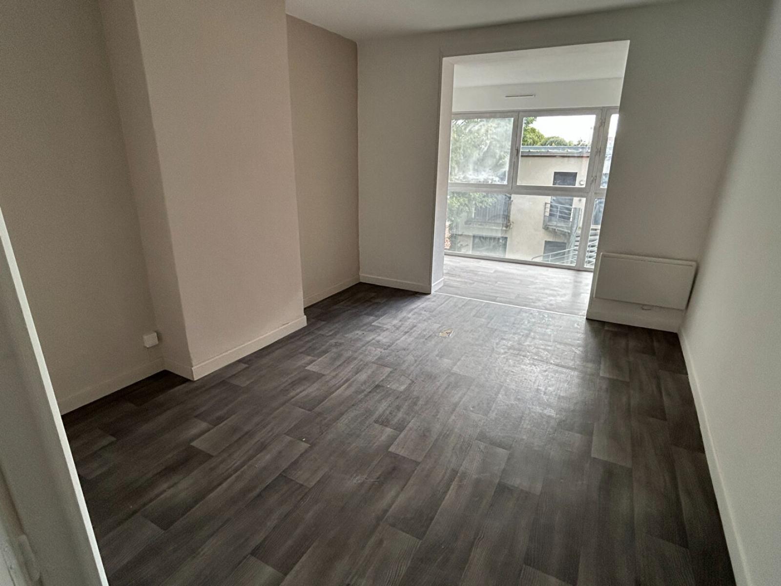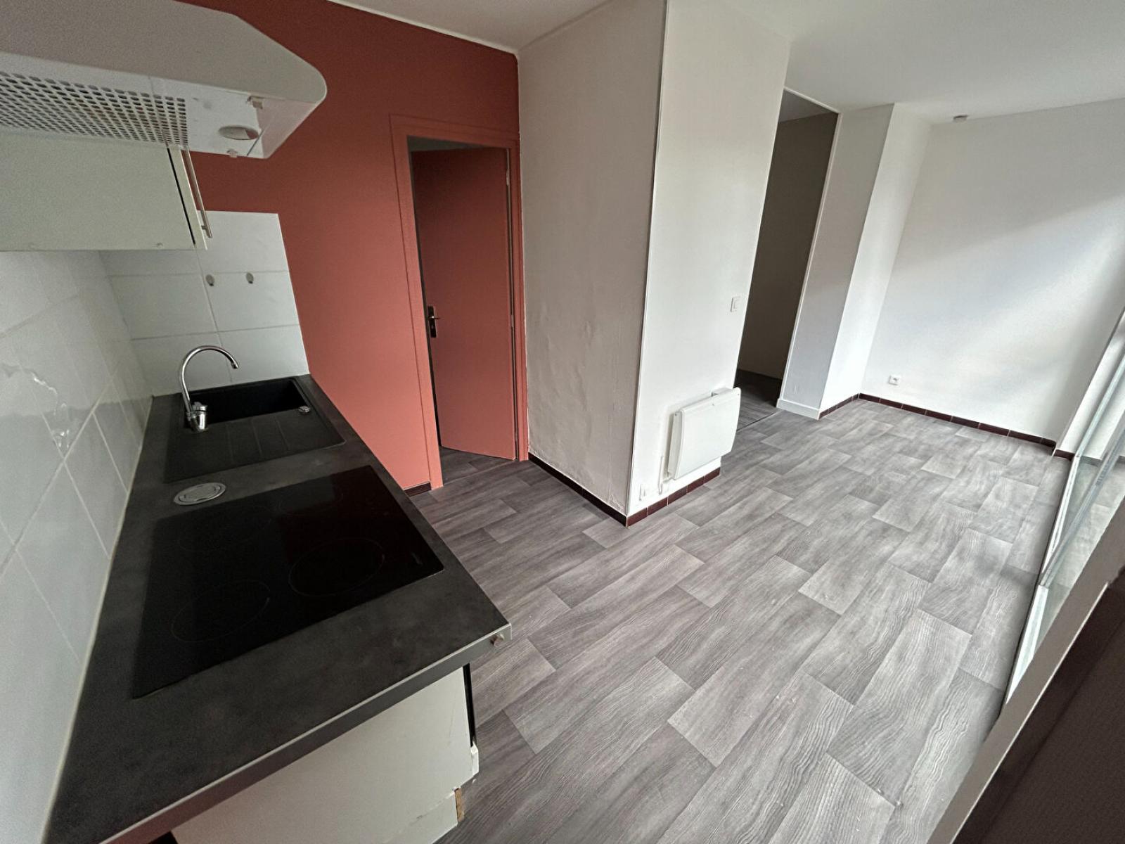 T2 traversant de 43.02m² au RDC comprenant une pièce principale lumineuse, une cuisine équipée (four, plaque, hotte et emplacement LL), une chambre parquetée, une SDB (baignoire, vasque, miroir et wc).