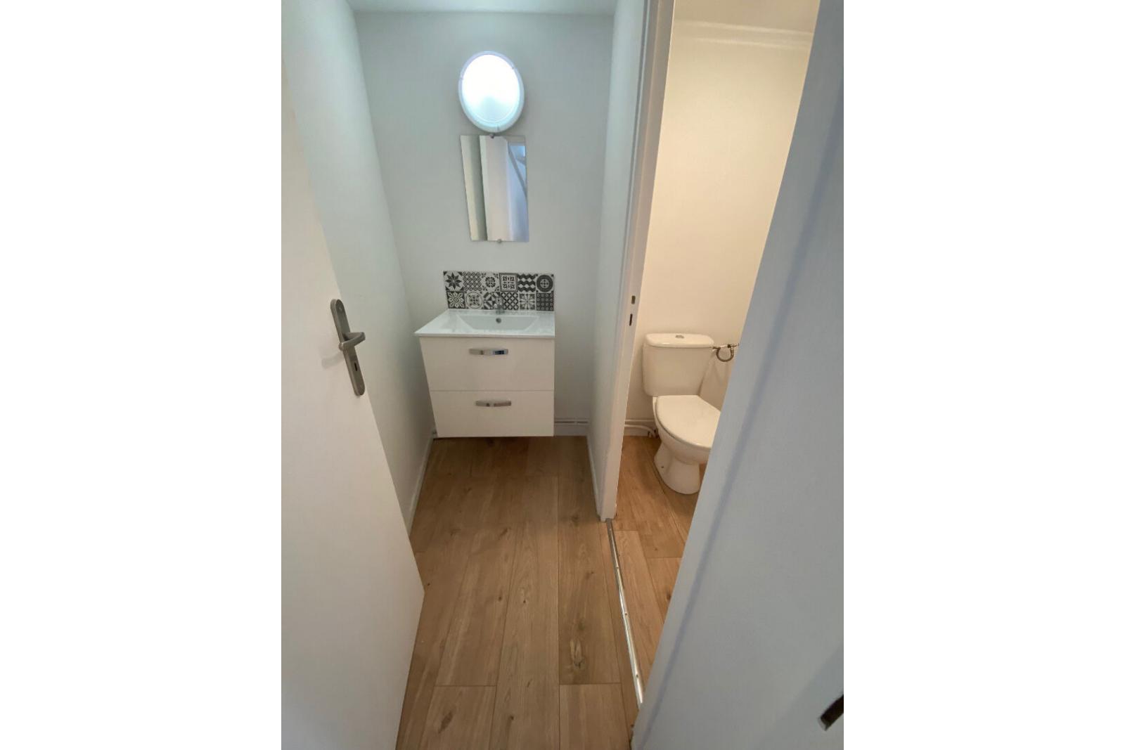 T2 en duplex de 33 m² situé au premier étage sans ascenseur. L'appartement comprend un séjour avec coin cuisine (plaques, hotte), une salle d'eau (douche, meuble vasque, WC. A l'étage, une chambre.