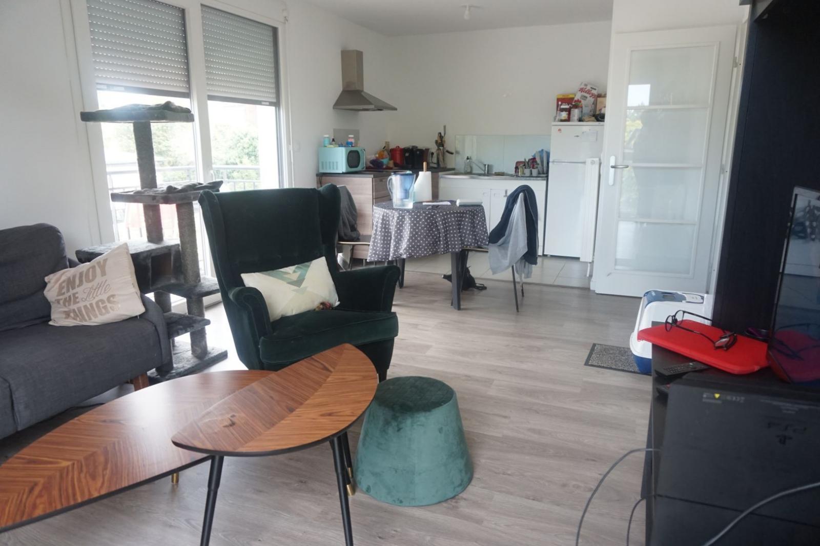 T2 SOUS LOI PINEL situé au 2 rue des entrepreneurs à Marcq-en-Baroeul, à proximité de l'arrêt de bus église Saint-Louis et de l'arrêt de Tramway Buisson. Cet appartement comprend une entrée avec rangement, une pièce à vivre parquetée ouverte sur un balcon, une*cuisine équipée (plaques, four, hotte, évier, frigo, éléments de rangement), une SDB (baignoire, lavabo, branchement machine à laver), et une grande chambre. L'appartement est loué avec une place de parking.