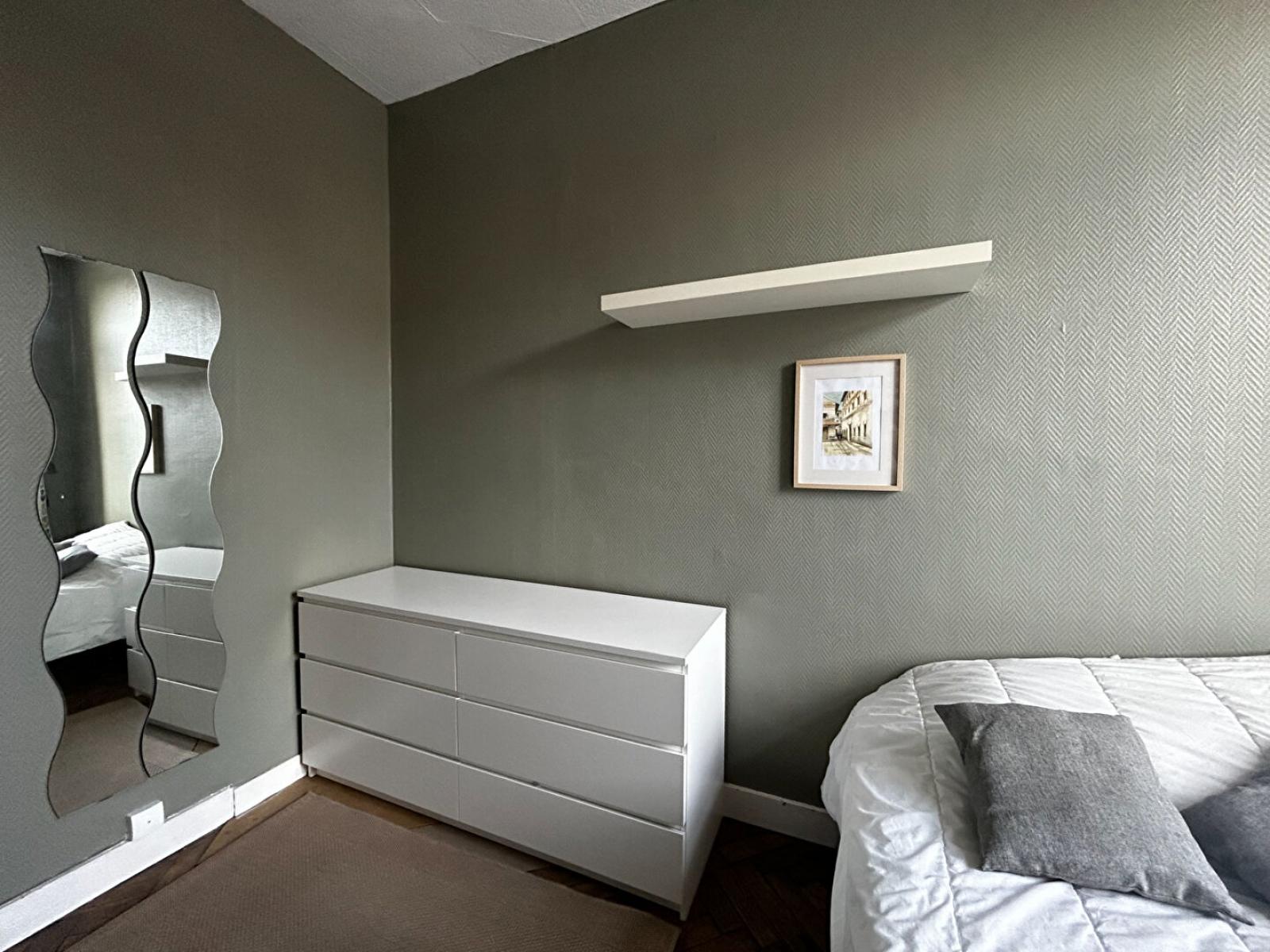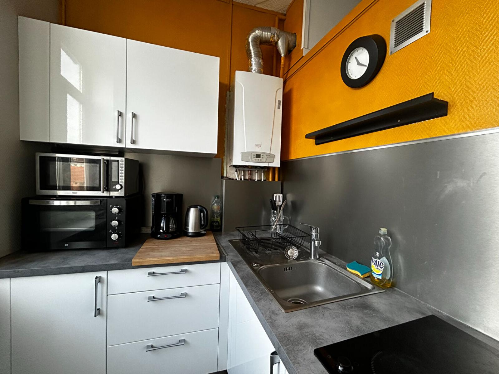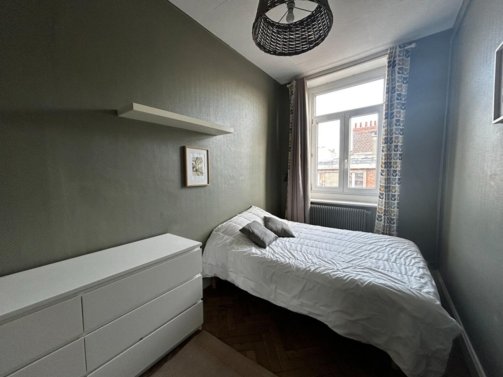 T2 meublé de 39m2 situé rue du Molinel. Le bien est composé d'une cuisine aménagée et équipée (frigo, plaques, évier, micro-ondes, four, machine à café, bouilloire, vaisselle, éléments hauts et bas), d'une salle d'eau avec douche, lavabo et machine à laver, d'un WC séparé, d'une chambre avec rangements et commode et d'une pièce de vie avec salle à manger et canapé-lit.
