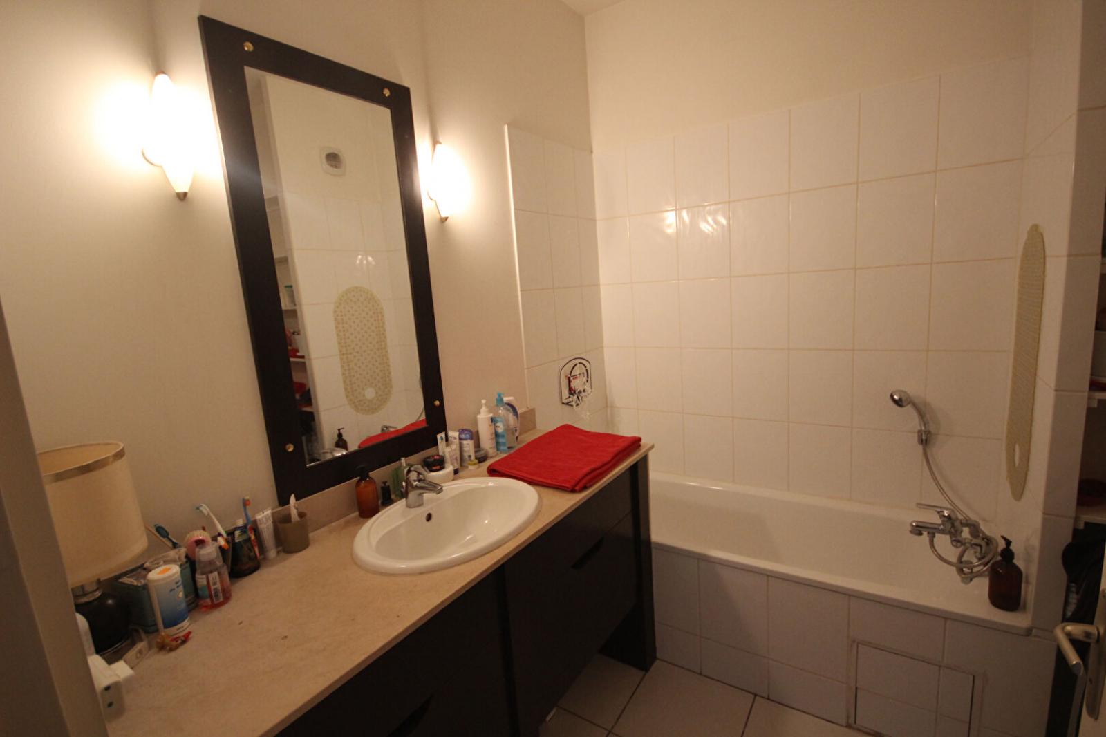 T3 de 70 m² situé au 2ème étage sans ascenseur. Il comprend une entrée, une pièce à vivre, une cuisine équipée (plaque emplacement four), deux chambres (dont une avec placard), une salle de bains (meuble vasque, baignoire, rangements) et WC séparés.