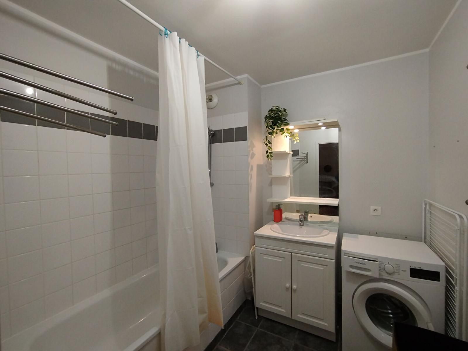 T3 de 66.26 m² comprenant une entrée avec placard, un séjour avec cuisine (rangements, four, lave-vaisselle, hotte, plaques cuisson gaz), deux chambres, une salle de bain (baignoire et MAL), WC séparés.