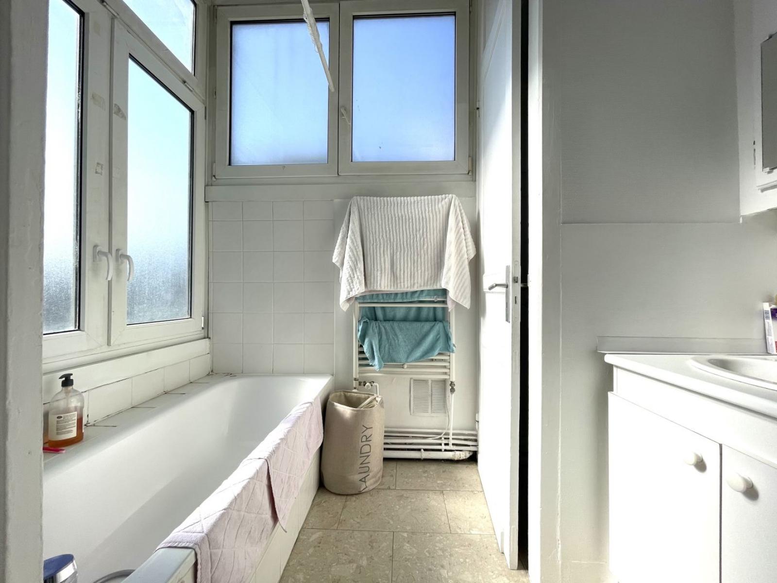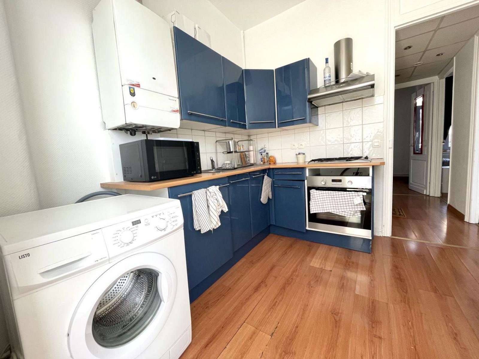 Très beau T3 de 43,60m2 situé au 12 rue Catel Béghin au 1er étage. Il se compose d'une entrée parquetée donnant sur un séjour avec cheminée, une cuisine équipée (plaques, four, frigo, hotte, lave-linge, rangements), une salle de bain (baignoire, lavabo, WC) et deux chambres dont l'une avec rangements, volets et cheminée.