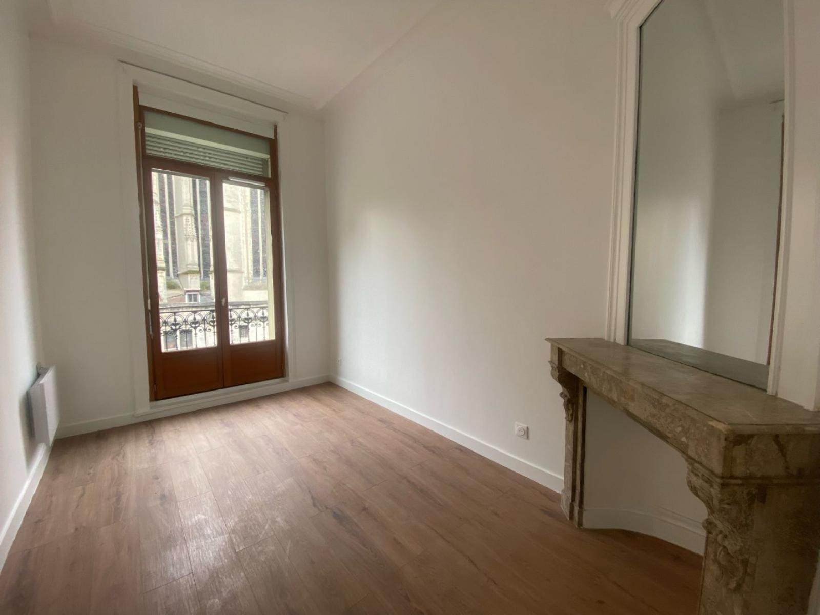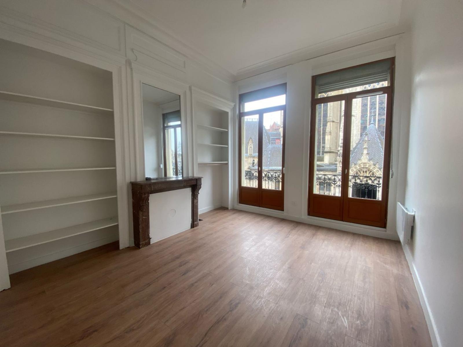 T3 de 59.61m2 situé au 21 Parvis Saint Maurice à Lille, à deux pas de la Grand Place et des gares. Il se compose d'une entrée, une pièce de vie avec cheminée décorative et balcon qui offre une belle vue sur l'église Saint Maurice de Lille, deux chambres avec cheminées décoratives, une salle de douche (branchement machine à laver, sèche serviette et meuble vasque) et WC séparés.