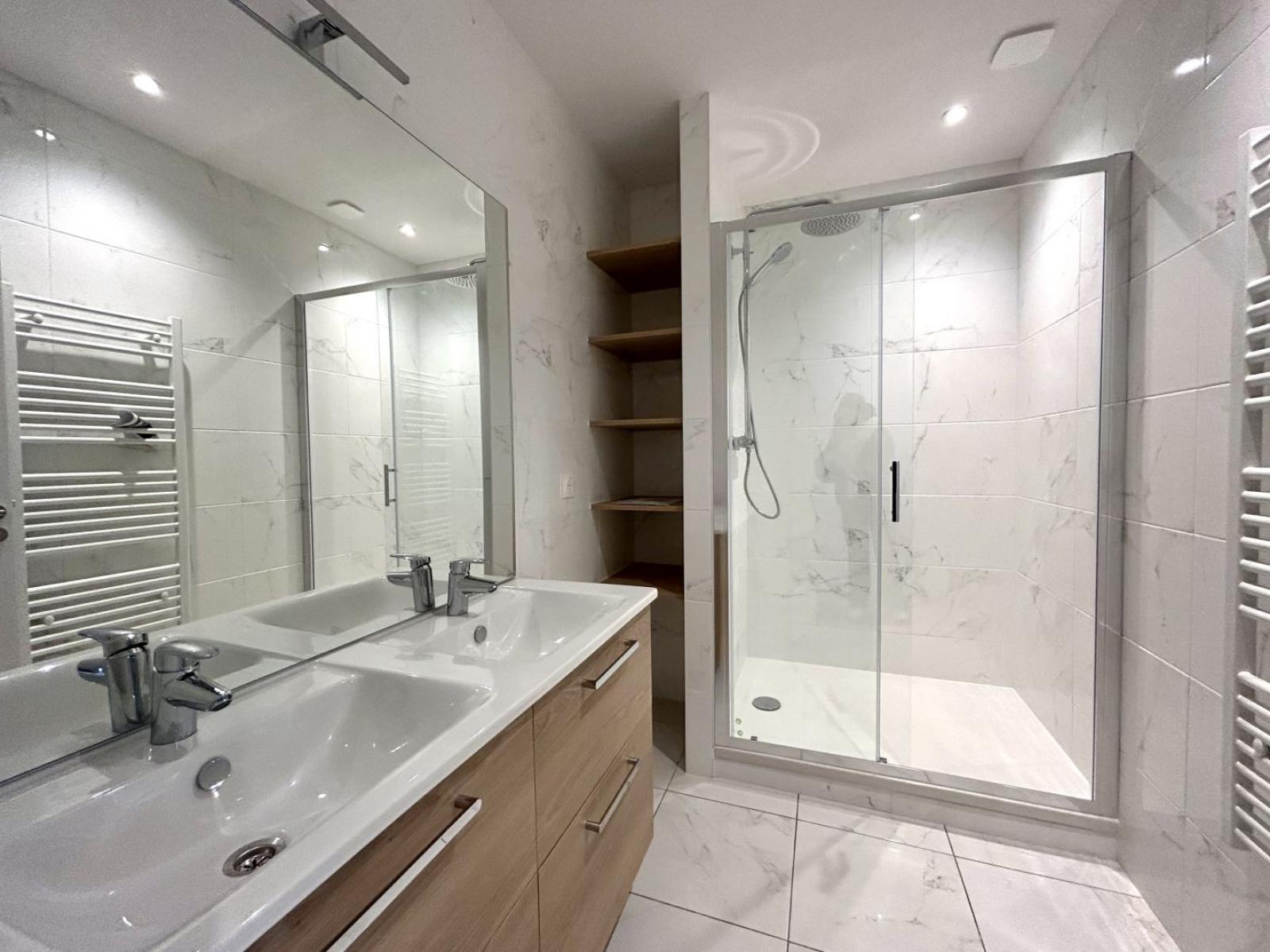 Splendide T3 de 68.44 m2, situé au premier étage dans une résidence récente rue Jules et Fernand Delcenserie. Il comprend une entrée avec rangements, WC séparés et cellier avec branchement MAL, une grande pièce à vivre lumineuse parquetée donnant sur un balcon, une cuisine équipée (frigo, plaques, four, hotte, branchement MAL), 2 chambres parquetées avec rangements, une salle de bain avec douche à l'italienne, double meuble vasque, sèche serviette. L'immeuble dispose d'un local vélo et d'un local poubelles.