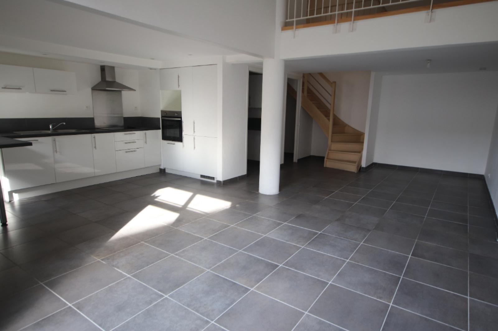 Loft T5 de 124 m² en triplex. Il comprend au RDC un double séjour, une cuisine équipée (plaque, hotte, four, lave-vaisselle, réfrigérateur et congélateur), une buanderie (emplacement MAL et sèche-linge), un vestiaire et WC séparés.
