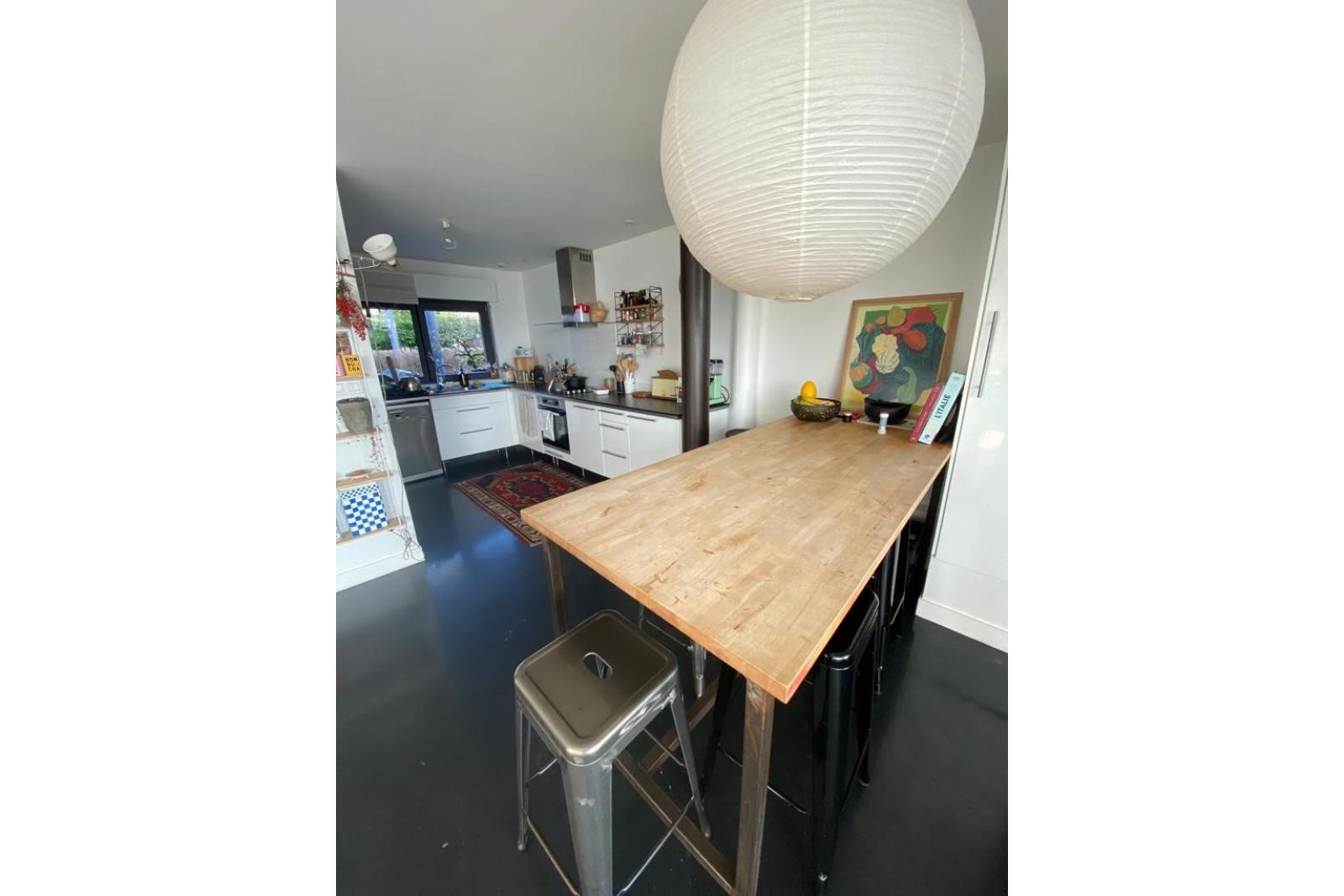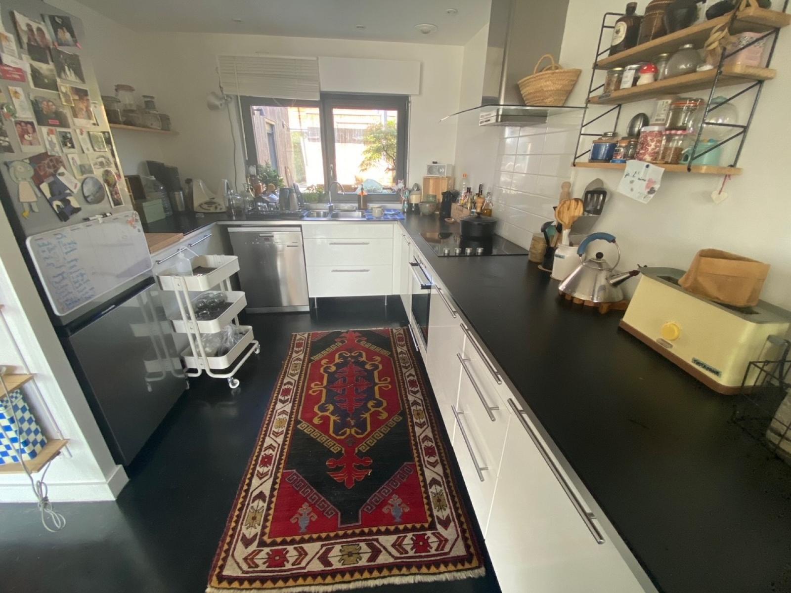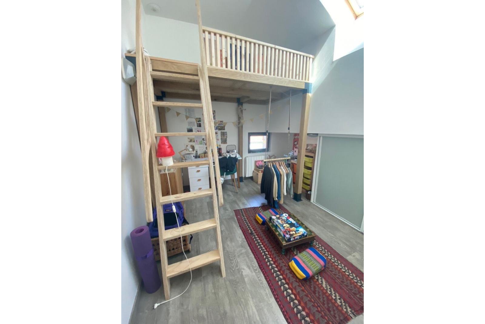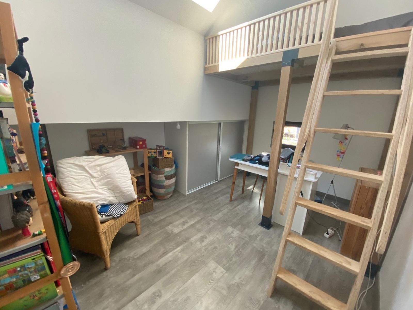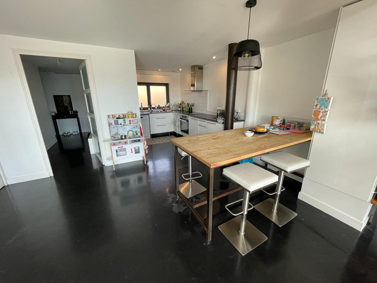 Loft T5 MEUBLÉ de 125 m² situé au 2ème étage avec ascenseur. Il comprend au 1er niveau une entrée avec placard, un séjour de 57 m² (canapé, table basse, table à manger et chaises) donnant sur une terrasse bien exposée, une cuisine équipée ouverte (plaque, hotte, four, lave-vaisselle), un cellier (lave-linge), une chambre avec placard, une salle de douche et des WC.