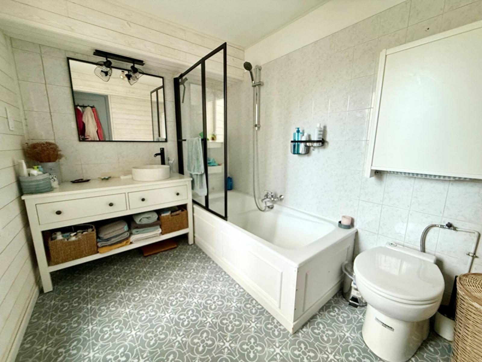A l'étage, une grande chambre avec rangements intégrés, une salle de bain avec WC, ainsi que deux chambres en enfilade offrant de beaux volumes.