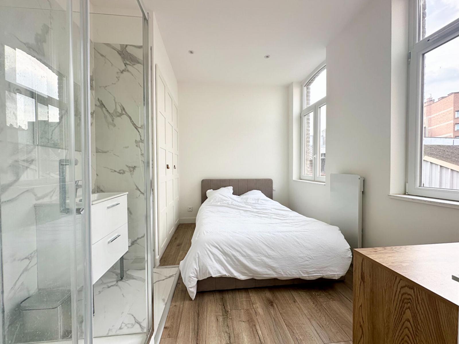 Situé à l'arrière d'un bel immeuble bourgeois dans l'hyper centre ville de Lille, au premier étage avec ascenseur. splendide appartement type 2 en duplex entièrement refait à neuf