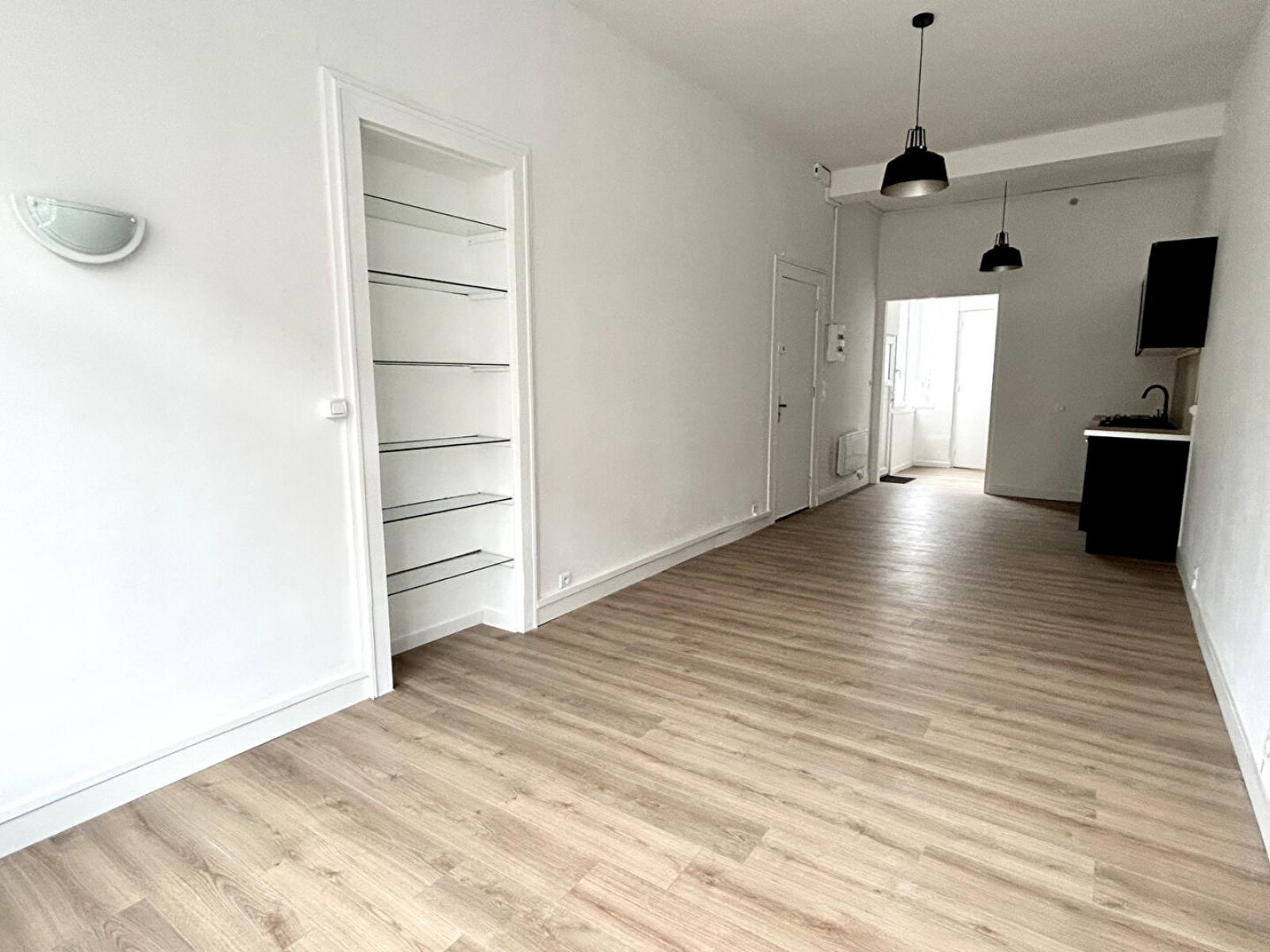 Dans une Rue calme, appartement T2, rénové, situé en rez-de-jardin, offrant une pièce de vie avec cuisine ouverte et équipée, une salle de douche avec WC et une chambre sur l'arrière.