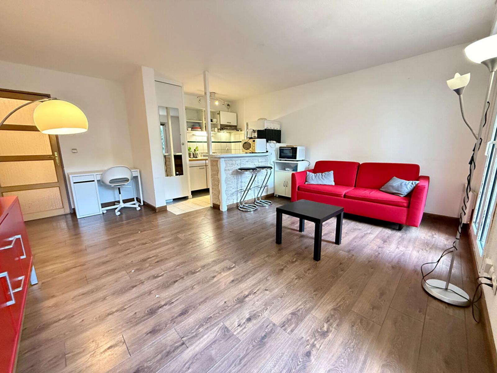 Situé dans une très belle copropriété, calme et sécurisée, appartement de 44 m2 comprenant un hall avec placard, une pièce de vie spacieuse avec cuisine équipée US donnant sur une terrasse sans vis à vis, une chambre et une salle...