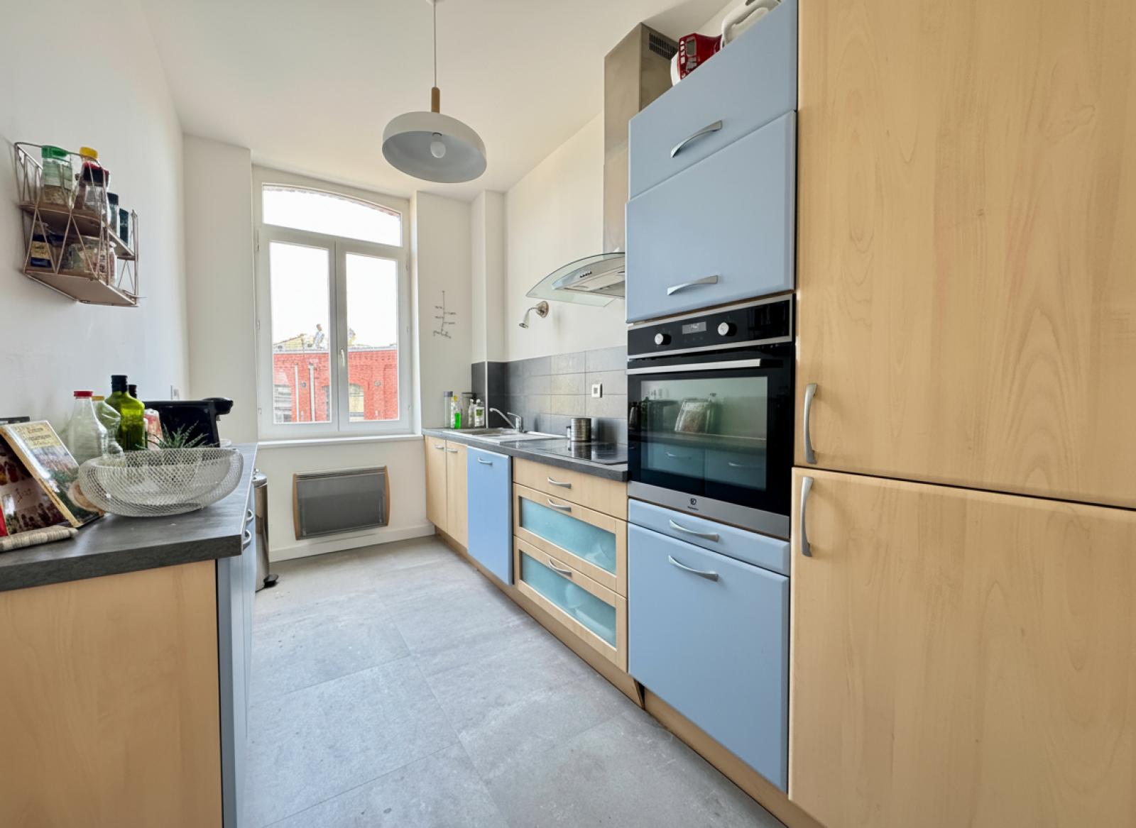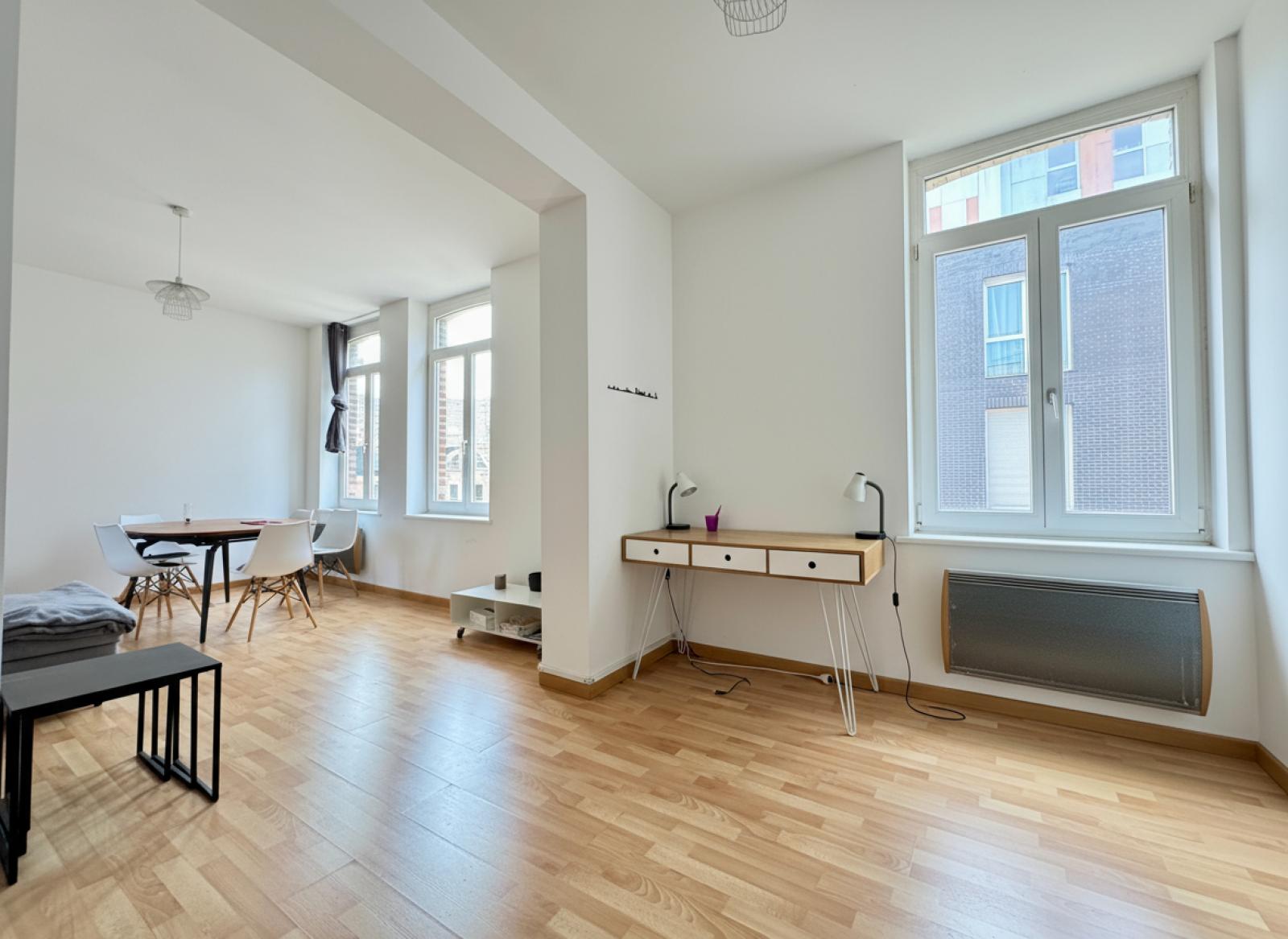 Situé en plein coeur du quartier étudiant lillois, appartement de 56 m2 comprenant une grande pièce de vie lumineuse avec espace bureau, une cuisine équipée, un cellier / buanderie, une chambre sur cour et une salle de bains.