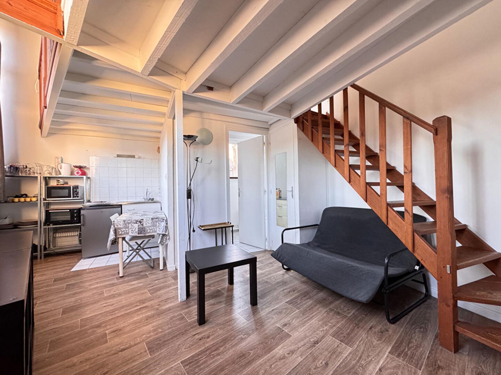 Cet appartement situé au deuxième étage de la copropriété dispose d'une pièce de vie lumineuse grâce ses trois fenêtres parfaitement exposées, un coin cuisine, un espace mezzanine et une salle de bains.