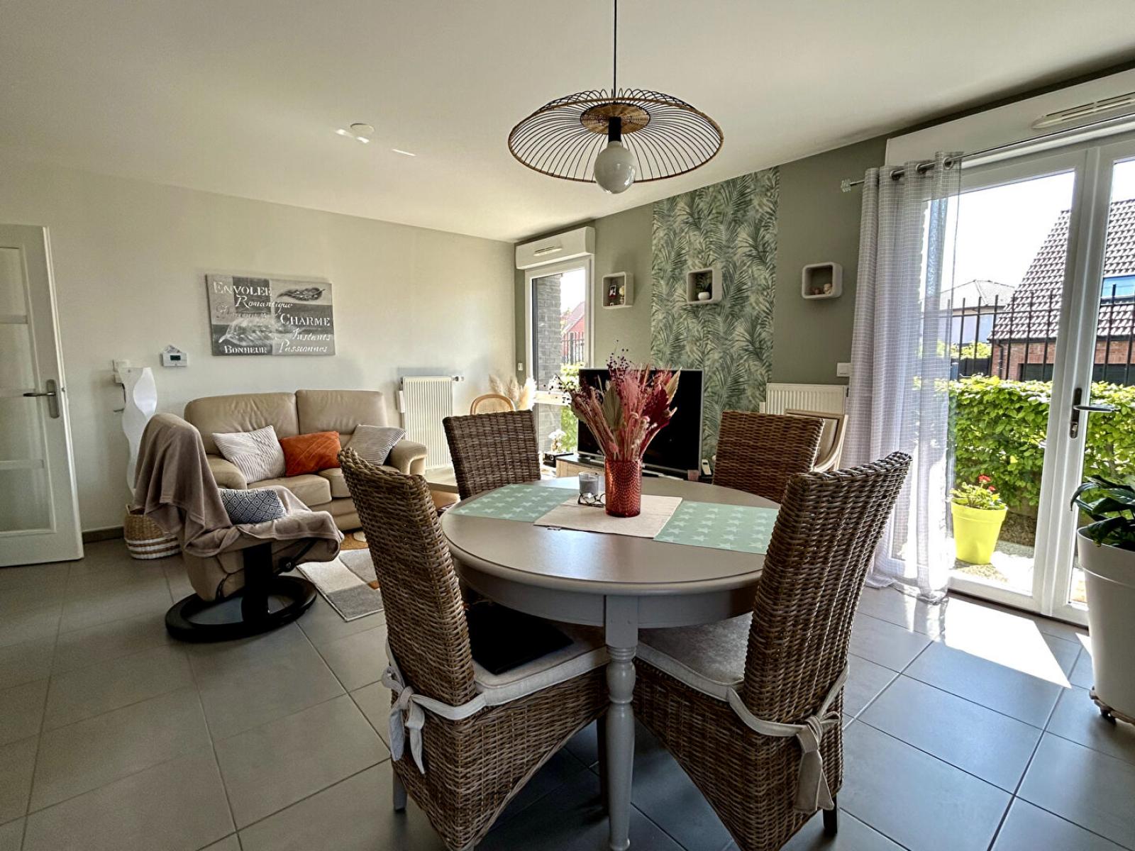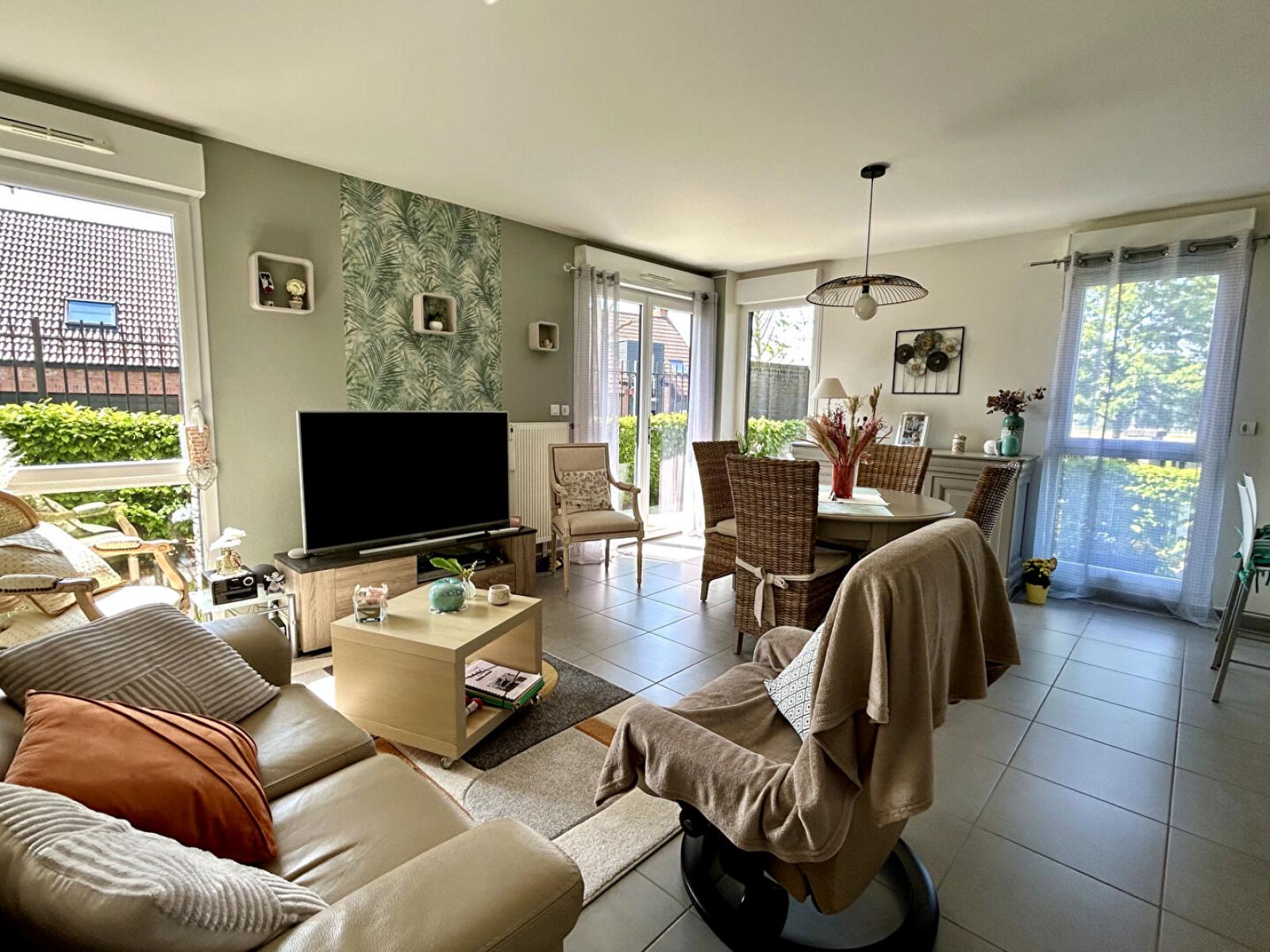 Au sein d'un immeuble récent, appartement T3 en rez-de-jardin de 73m2. Il offre un hall d'entrée avec placards, une pièce de vie de plus de 30m2 avec séjour lumineux et une cuisine équipée et ouverte avec son cellier, le tout donnant sur un extérieur de près de 30m2 avec terrasse et jardinet, orienté Sud/Sud/Ouest. Deux belles chambres de 10m2 et 12m2 avec placards, un WC et une salle de douche. Également, un garage box et une place de parking privée. Appartement en excellent à proximité du centre et des commerces. (3.64 % honoraires TTC à la charge de l'acquéreur.)