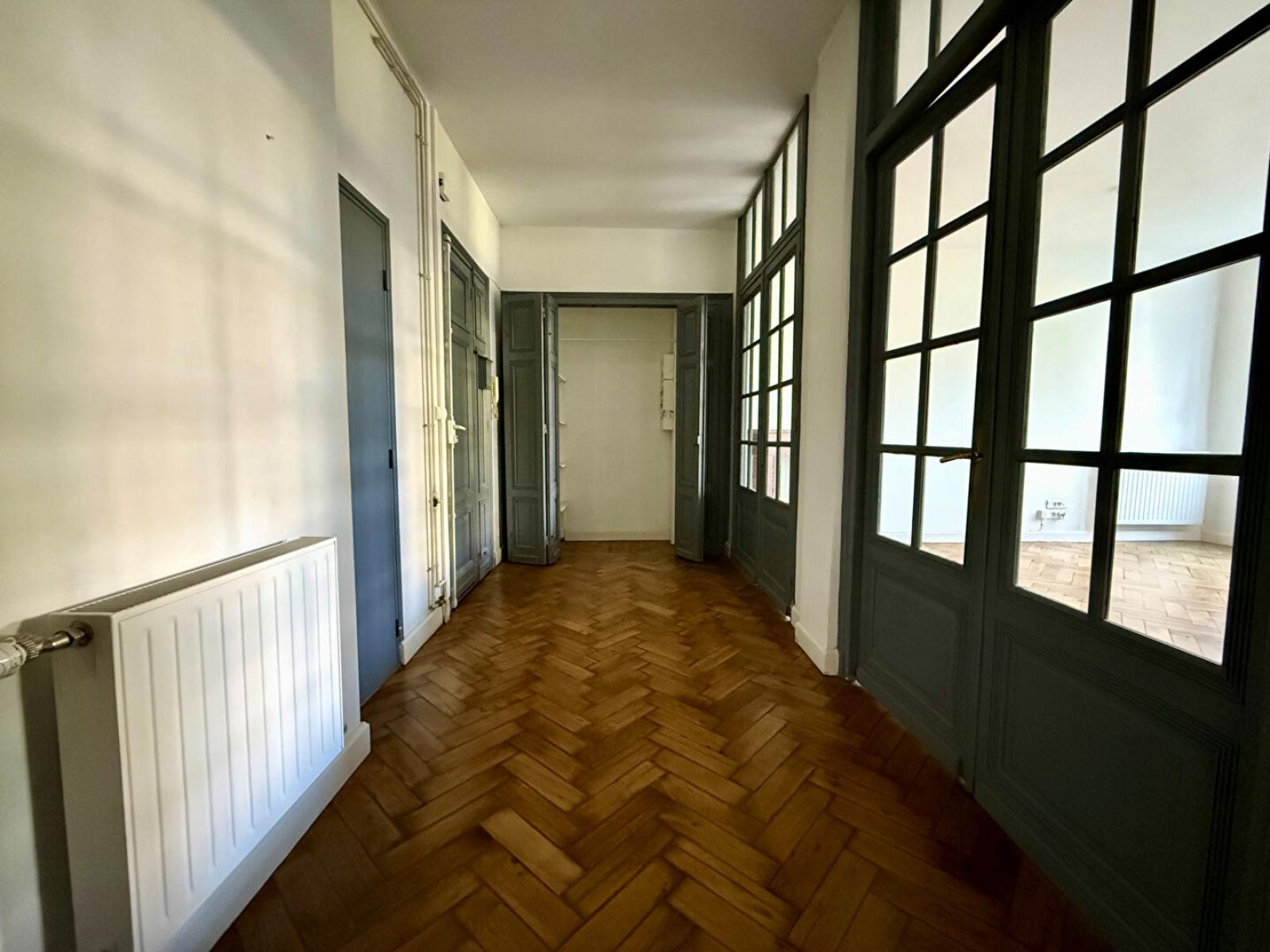 Situé au rez-de-chaussée, à l'arrière de la copropriété, l'appartement offre un environnement paisible et préservé. L'entrée, agrémentée de grandes portes vitrées, s'ouvre sur une belle pièce de vie avec cuisine ouverte. Le magnifique parquet et la cheminée décorative apportent un véritable cachet et soulignent le charme de l'ancien.
